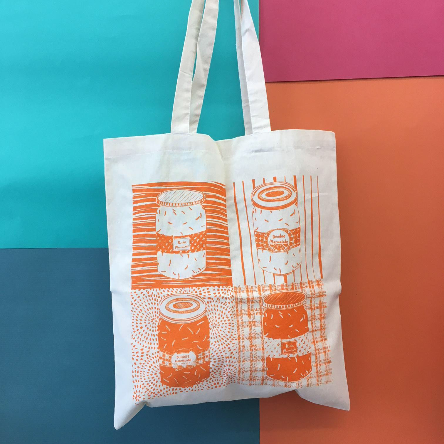 Dundee Marmalade + Dundee Cake Tea Towels + and Enamel Pin created from my illustrations into products. Products available from my shop.